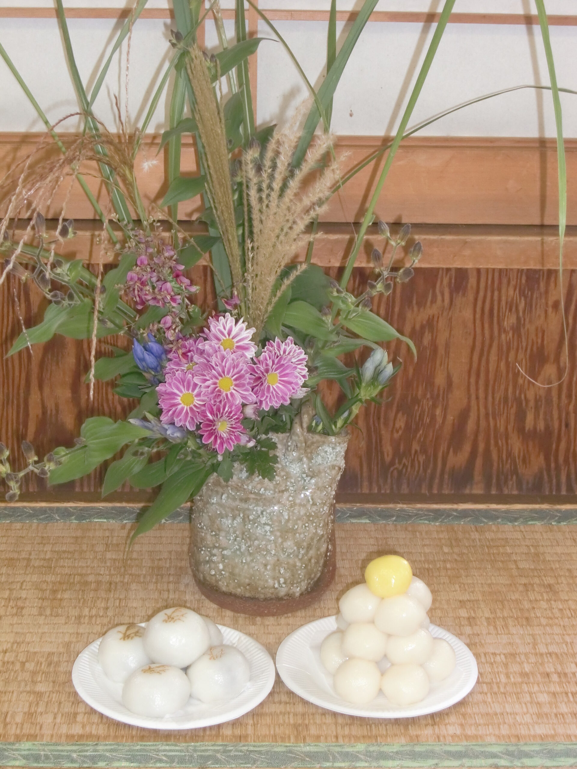15夜 季節のお菓子 2025.10.06(月) おはようございます。 今日は15夜です。 ちょっと天気が心配ですが・・・ 月見だんご、重ねだんご酒まんじゅう用意してます。 また、店内にすすきありますのでご自由にお持ち帰りくださいね~